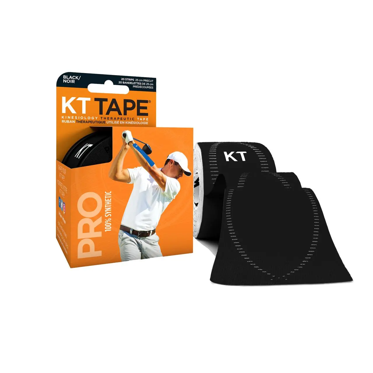 KT Tape Pro ® is performance engineered to work in the harshest environments. It’s the world’s only 100% synthetic kinesiology tape, re-engineered with stronger adhesive, to outlast anything you can throw at it. Each box comes with 20 precut strips of 100% synthetic tape. One hard plastic carrying case with twist on lids to keep your tape in good shape in your gym bag or purse. One Quick Start Guide with step-by-step instructions on the most common injuries.