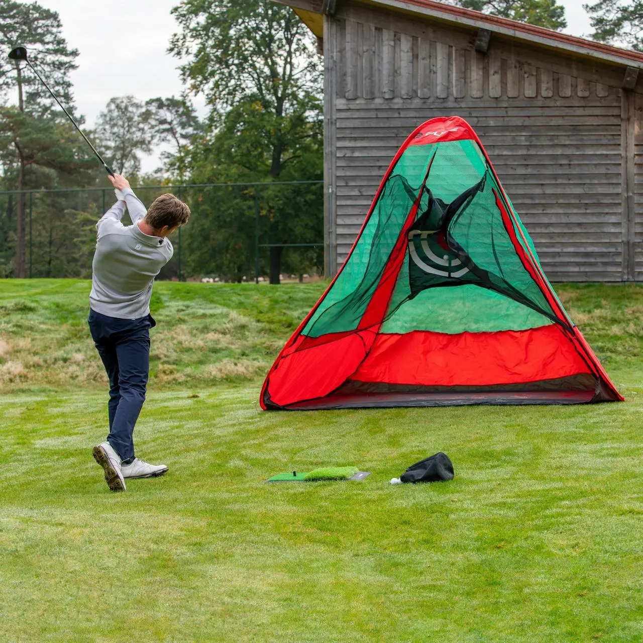 - Two-foot diameter bulls-eye target is ideal for chipping and wedge practice.