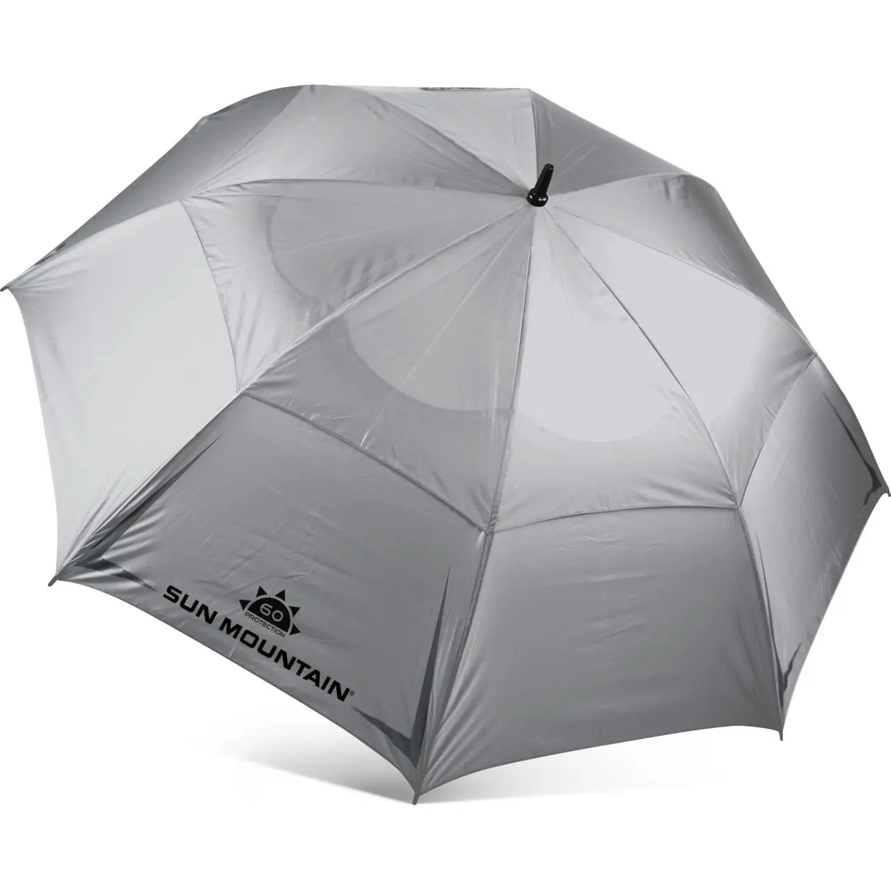 The auto-operation, double-canopy umbrella is perfect for playing golf in the rain or sun. The silver umbrella is UPF-rated 60+ and black is rated 30+. The rubber-covered, slip-resistant handle fits perfectly in the umbrella holder of Sun Mountain carts.